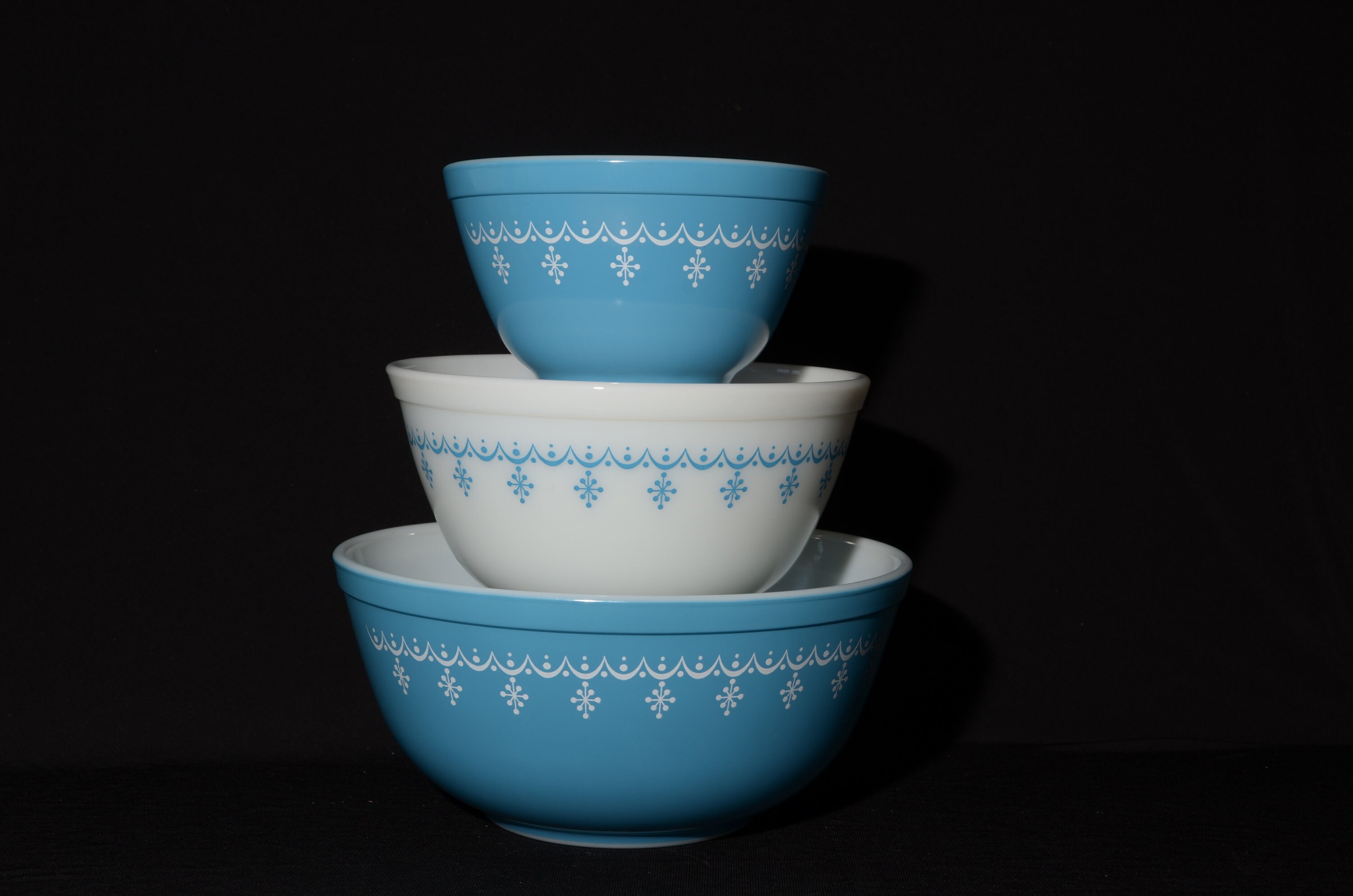 美品 オールドパイレックス PYREX スノーフレーク・ブルー ボウル3個セット PYREX Snowflake Blue Set of 3 Bowls 401, 402 and 403 Vintage